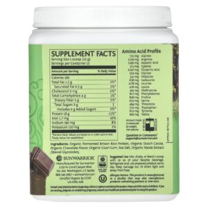 Sunwarrior À Base de Plantas Proteína Clássica Chocolate 375 g (132 oz) – Sunwarrior Nutrição Esportiva Proteína Proteína Vegetal Proteína de Arroz.