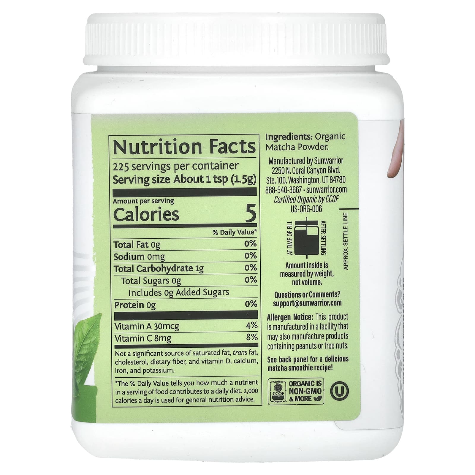 Sunwarrior Colheita Matcha Orgânico em Pó 3375 g (119 oz) – Sunwarrior Alimentos Chás e bebidas Tea Matchá.