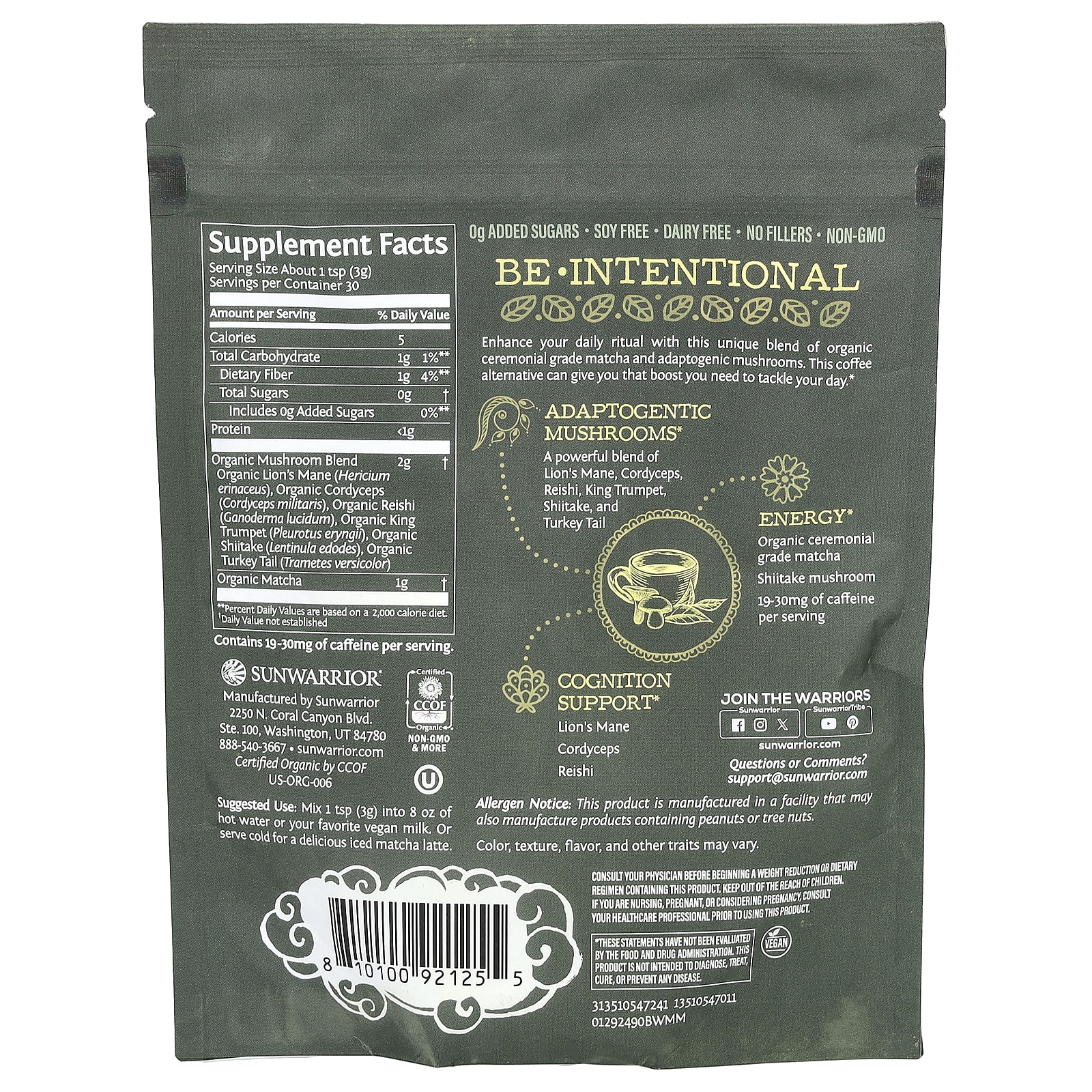 Sunwarrior Matcha e Cogumelos Orgânicos 90 g (317 oz) – Sunwarrior Alimentos Chás e bebidas Tea Matchá Coffee Café de Ervas e Cogumelos.