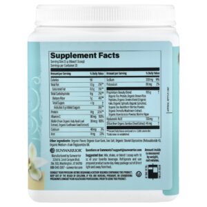 | Mistura Patenteada de Beleza Proteína de Ervilha Orgânica, Peptídeos de Arroz Integral Orgânico, Mistura de Verduras Orgânicas (Couve Orgânica, Espinafre Orgânico, Espirulina Orgânica), Pó de Bagas de Espinheiro Marítimo Orgânico, Extrato de Cogumelo Tremella Orgânico, Suco de Acerola Orgânica em Pó, Algas Marinhas. |