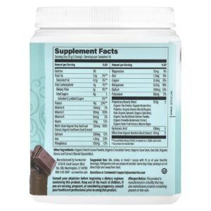 Cacau holandês orgânico em pó, sabor de chocolate orgânico, goma guar orgânica, sal marinho, extrato da folha de estévia orgânica (glicosídeos de esteviol).