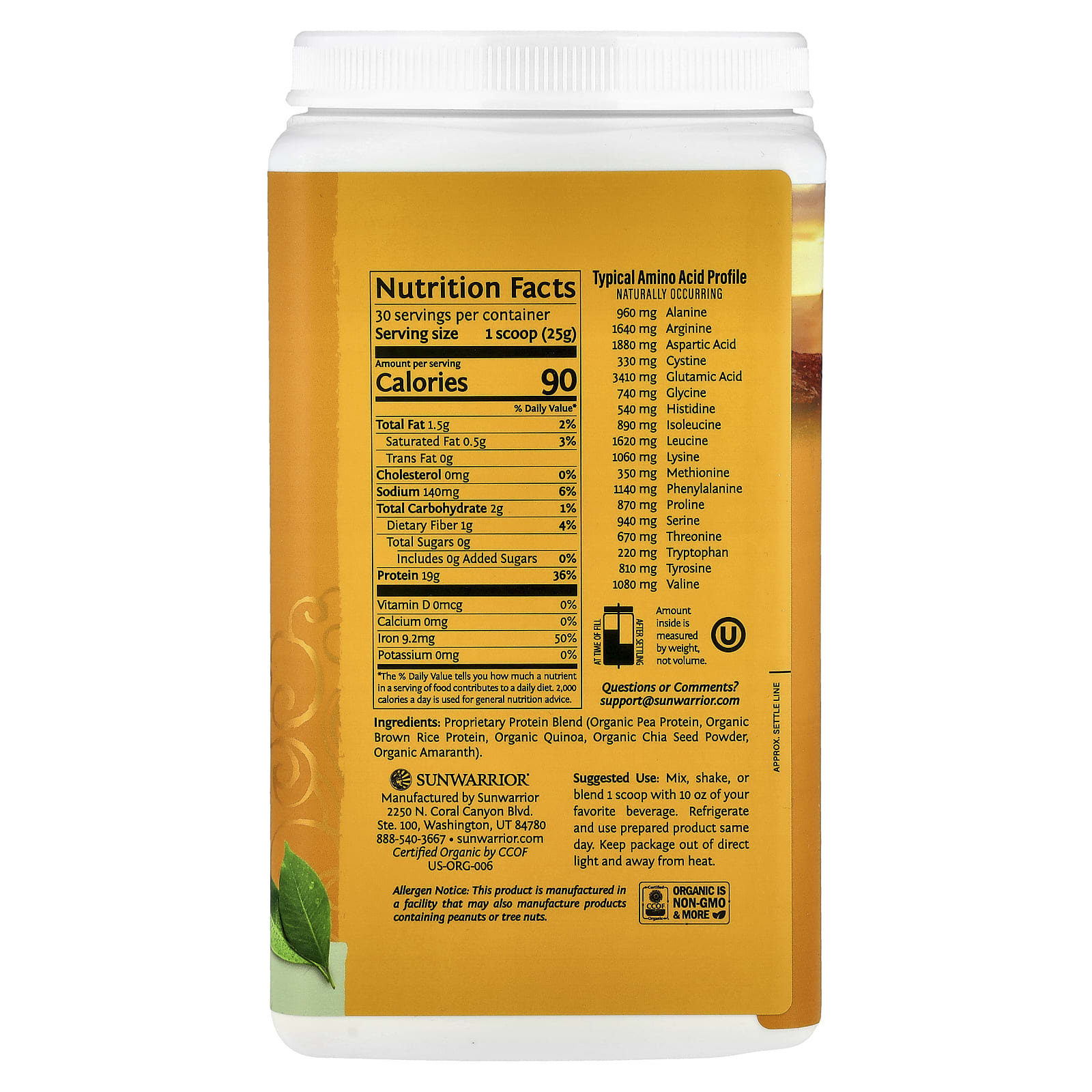 Sunwarrior Protein Classic Plus À Base de Plantas Natural 750 g (165 lb)