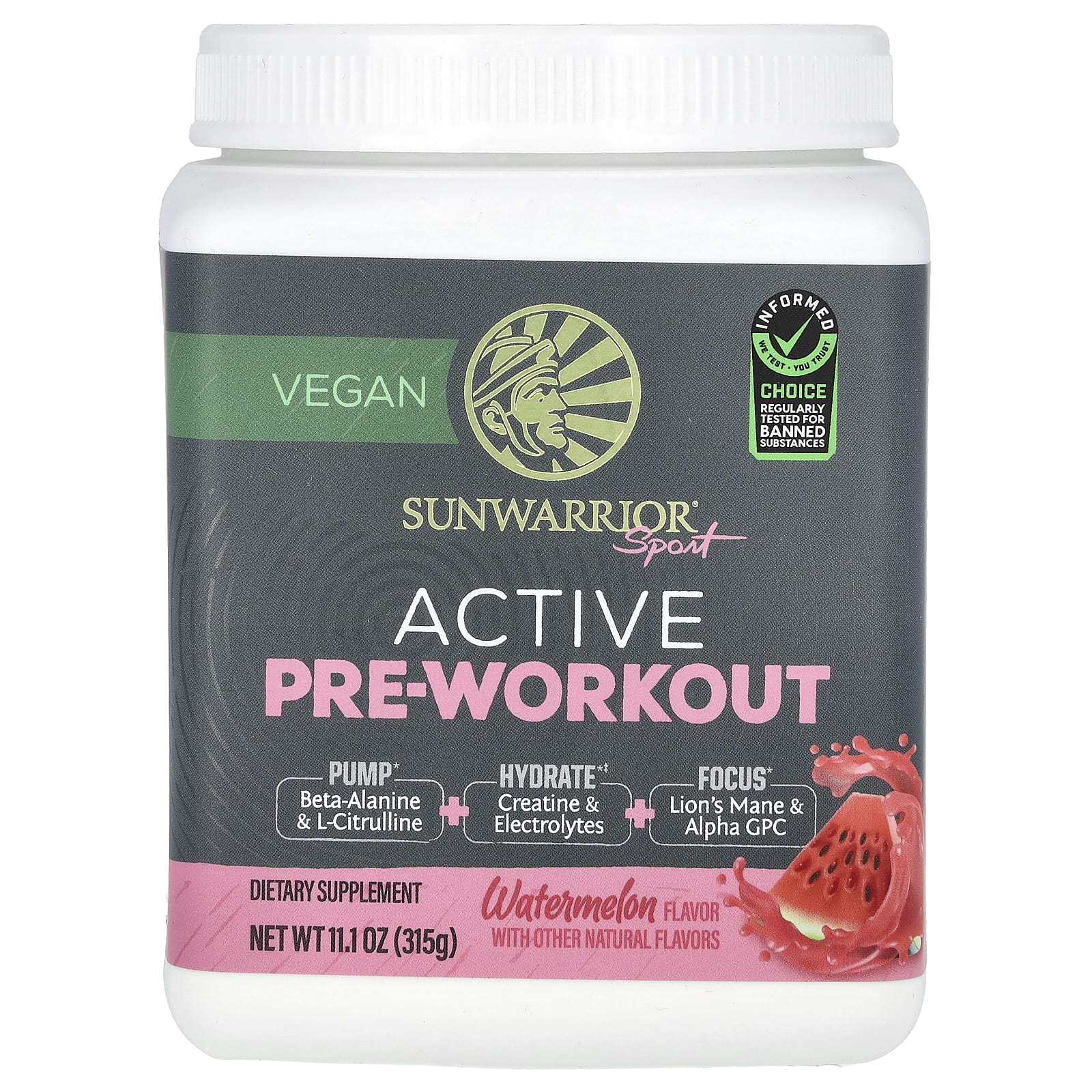 Sunwarrior Sport Pré-treino Ativo Melancia 315 g (111 oz) – Sunwarrior Nutrição Esportiva Suplementos Pré-treino Hidratação e Eletrólitos.