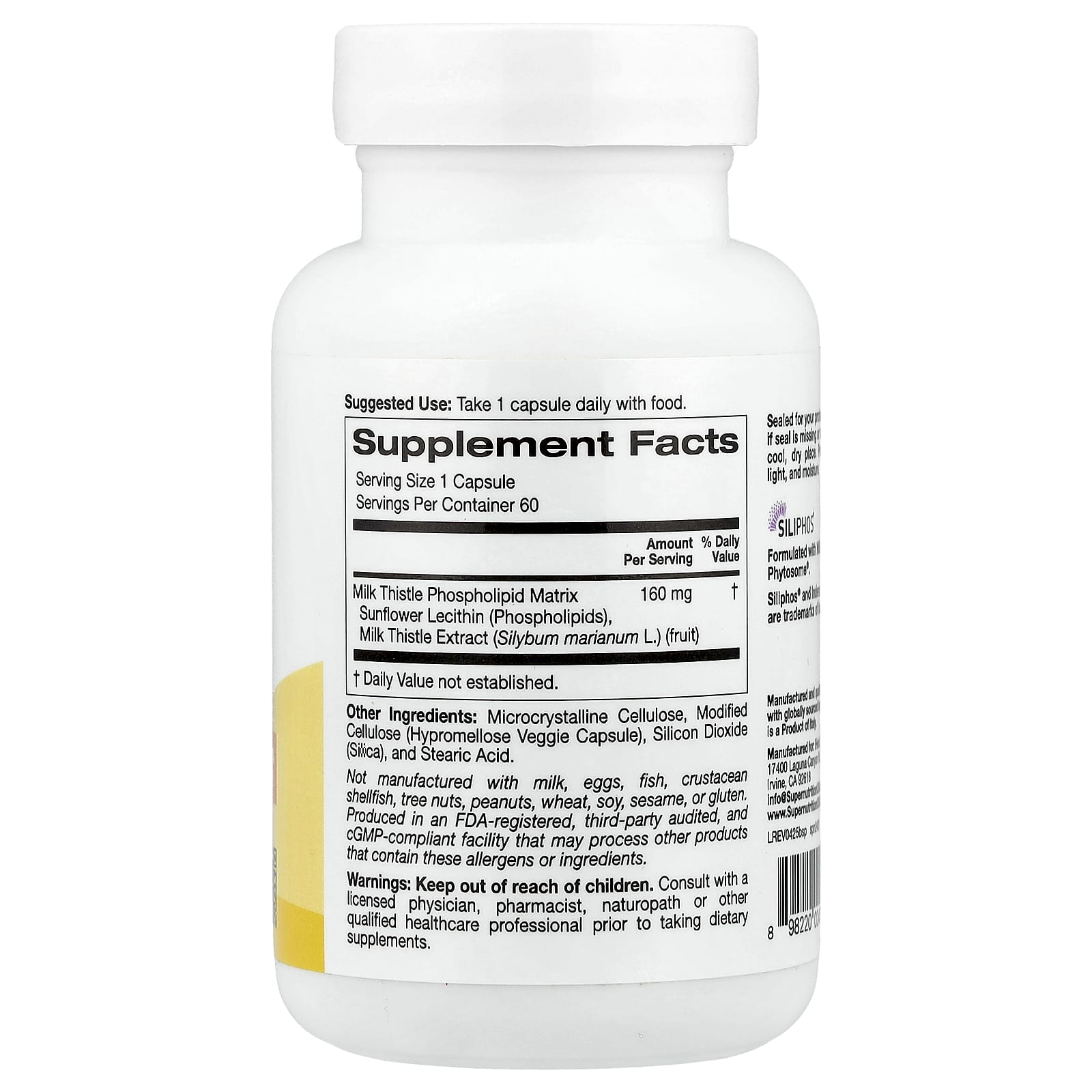 Super Nutrition Cardo-mariano Phytosome 160 mg 60 Cápsulas Vegetais – Super Nutrition Suplementos Ervas Cardo-mariano (Silimarina).