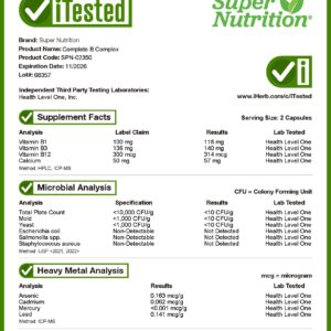 Super Nutrition Complexo B Completo com L-metilfolato e Mecobalamina B12 180 Cápsulas Vegetais – Super Nutrition Suplementos Vitaminas Vitamina B Complexo de Vitaminas B Vitamina B3 (Niacina).