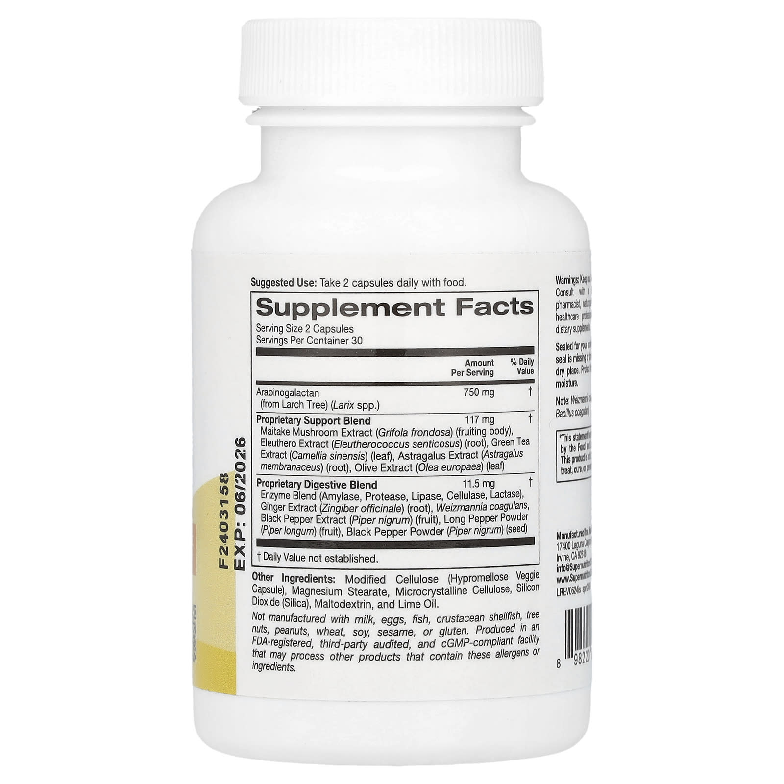 Super Nutrition Immune Support com Arabinogalactan Extrato de Cogumelo Maitake Extrato de Eleutero e Extrato de Chá Verde 60 Cápsulas Vegetais – Super Nutrition Suplementos Ervas Fórmulas de Ervas Cogumelos Maitake.