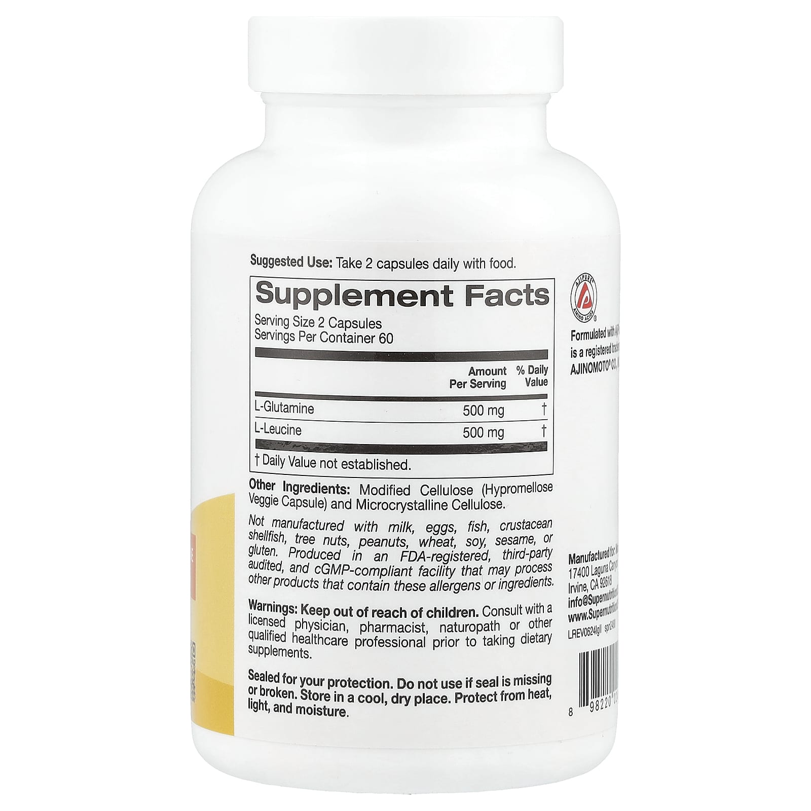 Super Nutrition, L-glutamina + L-leucina, 120 Cápsulas Vegetais – Super Nutrition Suplementos Antioxidantes Glutationa Aminoácidos Leucina.