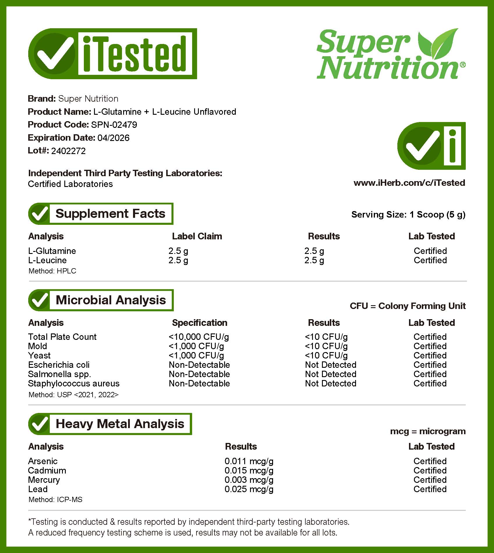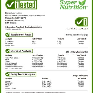 Super Nutrition L-glutamina + L-leucina Sem Sabor 450 g (1587 oz) – Super Nutrition Suplementos Aminoácidos L-Glutamina Leucina.