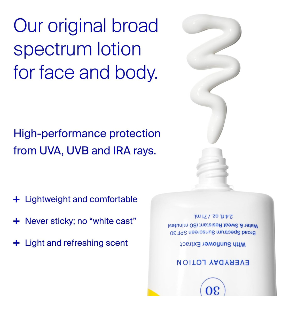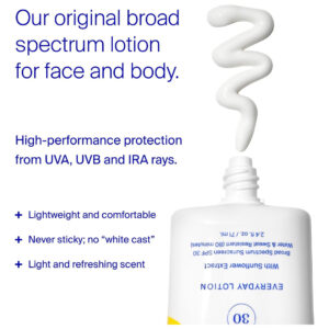 PLAY EVERYDAY LOTION FPS 30 oferece proteção de espectro super amplo para rosto e corpo. Enriquecida com antioxidantes de girassol, alecrim e arroz, a fórmula protege dos danos UV, defendendo a pele do fotoenvelhecimento e da desidratação. Ideal para um dia de brincadeira, esta loção agradável, resistente à água e ao suor, é hidratante, leve e de rápida absorção. Perfeito para todos os tons de pele.