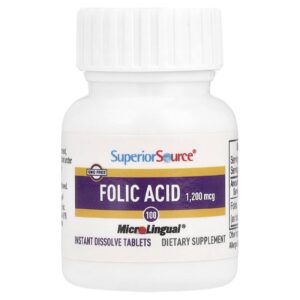 Superior Source Ácido Fólico 1.200 mcg 100 Comprimidos de Dissolução Instantânea MicroLingual – Superior Source Suplementos Vitaminas Vitamina B Vitamin B9 (Folate – Folic Acid).