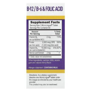 Superior Source B-12 B-6 e Ácido Fólico 60 Comprimidos MicroLingual® de Dissolução Instantânea – Superior Source Suplementos Vitaminas Vitamina B Vitamina B12 (Cobalamina).