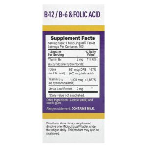 Superior Source Cianocobalamina B-12 B-6 e Ácido Fólico 100 Comprimidos MicroLingual de Dissolução Instantânea – Superior Source Suplementos Vitaminas Vitamina B Vitamina B12 (Cobalamina) Vitamin B9 (Folate – Folic Acid).