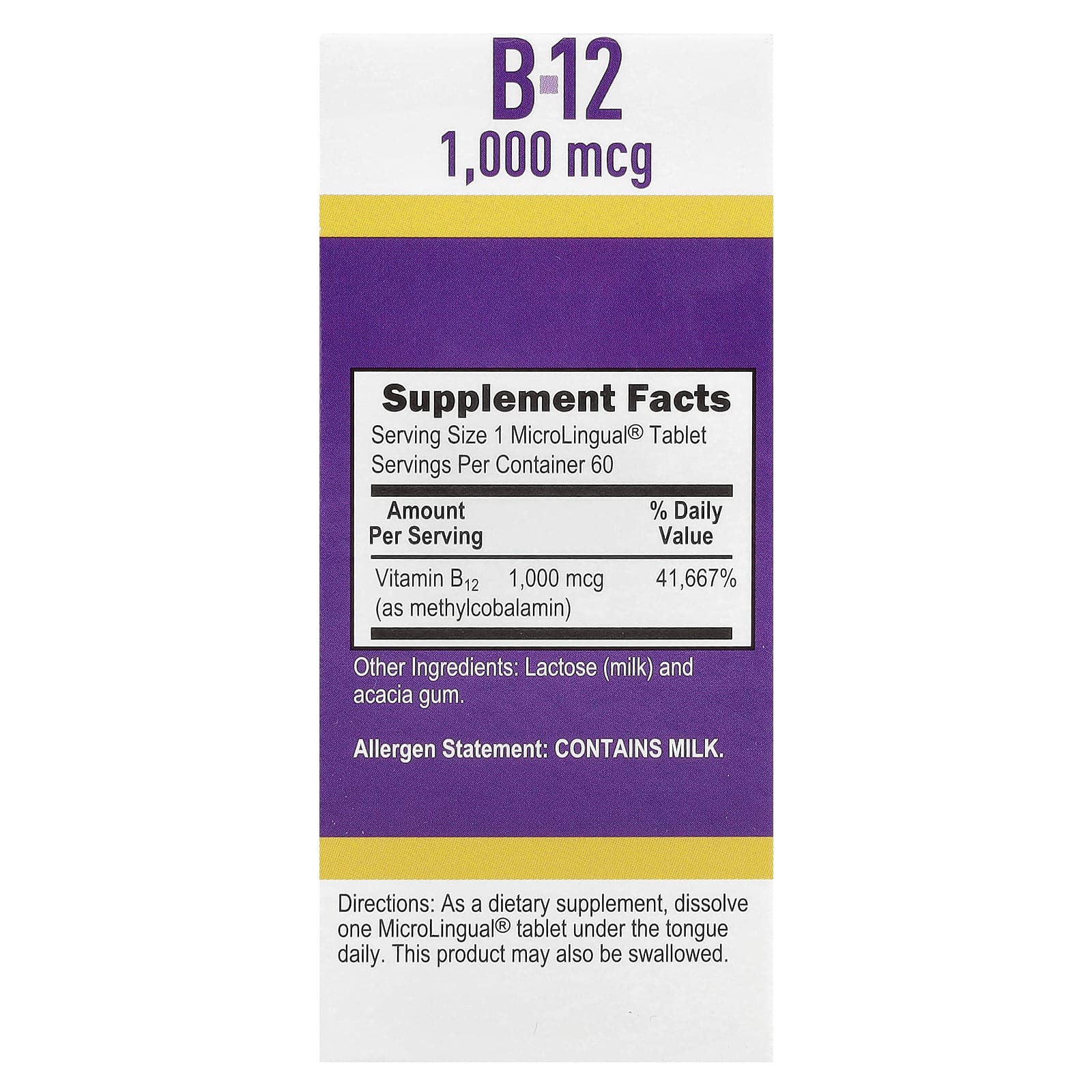 | Vitamina B12 (como mecobalamina) | 1.000 mcg | 41.667% |