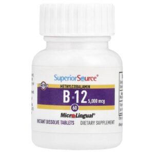 Superior Source Mecobalamina B-12 5.000 mcg 60 Comprimidos MicroLingual® de Dissolução Instantânea – Superior Source Suplementos Vitaminas Vitamina B Vitamina B12 (Cobalamina) Metilcobalamina.