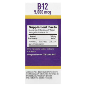 | Vitamina B12 (como mecobalamina) | 5.000 mcg | 208.333% |