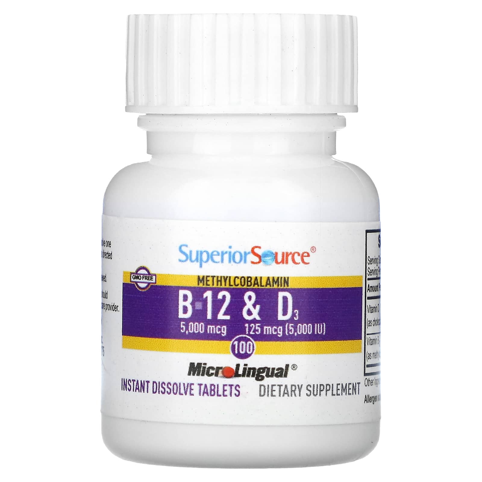 Superior Source Metilcobalamina B-12 e Vitamina D3 100 Comprimidos de MicroLingual Dissolução Instantânea