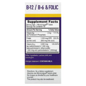Superior Source Triple B-12 B-6 Ácido Fólico 60 Comprimidos MicroLingual de Dissolução Instantânea – Superior Source Suplementos Vitaminas Vitamina B.