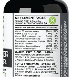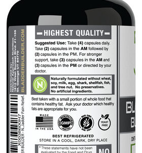 BLADDER BUILDER is a natural approach to support persons who struggle with ongoing bladder and pelvic discomfort and offers high-quality bioactive ingredients through a unique set of mechanisms of action to support better bladder health.* For women and men. – BLADDER BUILDER is a natural approach to support persons who struggle with ongoing bladder and pelvic discomfort and offers high-quality bioactive ingredients through a unique set of mechanisms of action to support better bladder health. – BLADDER BUILDER is doctor recommended and trusted by consumers and may be a suitable option as a daily bladder health and pelvic discomfort regimen. With consistent use, BLADDER BUILDER may support optimal bladder health, help support the bladders GAG (glycosaminoglycan) layer, and support digestive health. – BLADDER BUILDER is manufactured in a USA GMP-certified facility. All the ingredients in BLADDER BUILDER are third-party tested, and this formula is suitable for women and men. – BLADDER BUILDERs high-quality bioactive ingredients include HI-Q (High-Absorption Quercetin), Chondroitin Sulfate, Collagen Peptides, L-Arginine L-Citrulline, and PEA (Palmitoylethanolamide) blended with eight premium targeted probiotic strains. BLADDER BUILDER is gluten-free and Non-GMO. No preservatives or anything artificial. No soy, milk, egg, shellfish, fish, wheat, or tree nuts. – Before consuming this product, always check with your doctor to ensure no contraindications with your medications or medical condition. For women and men.