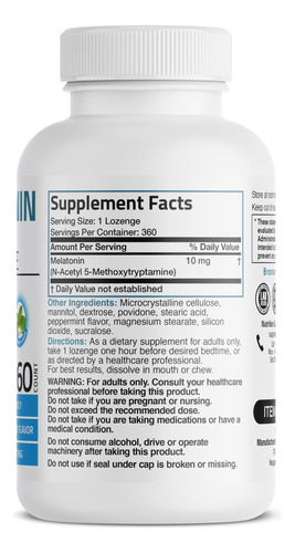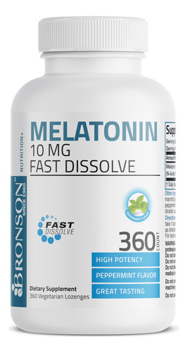 A melatonina é uma secreção natural da glândula pineal e é produzida pelo corpo. Normalmente, o corpo aumenta os níveis de melatonina quando está escuro e reduz os níveis de melatonina à luz do dia. Vários fatores podem perturbar o intrincado equilíbrio da melatonina, incluindo estresse, trabalho por turnos, horários excessivos ou turnos de trabalho rotativos. A melatonina de 10 mg de dissolução rápida da Bronson fornece uma quantidade eficaz de melatonina. – Ultra Support: a melatonina Bronson é fornecida em convenientes comprimidos de dissolução rápida de 10 mg – Comprimidos de dissolução rápida: a fórmula exclusiva de cereja de dissolução rápida da Bronson permite uma absorção mais rápida que pode ser tomada a qualquer hora e em qualquer lugar. – Confiável desde 1960: os pioneiros das vitaminas Bronson foram um grupo de farmacêuticos que testemunhou os benefícios da suplementação de vitaminas e minerais pela primeira vez e com seus pacientes. As vitaminas Bronson têm sido constantemente mencionadas pelos melhores profissionais médicos desde a nossa criação em 1960.