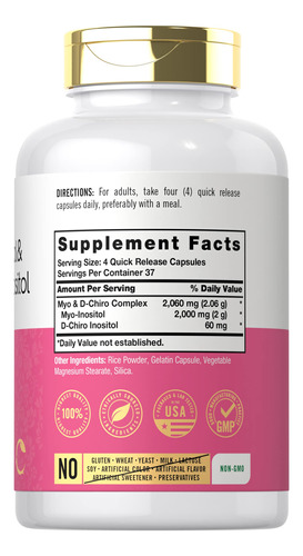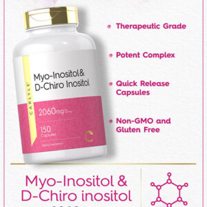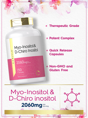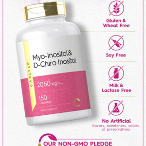 O que é inositol? Também conhecido como vitamina B8, esse nutriente ocorre naturalmente no corpo e é encontrado em frutas cítricas, grãos e nozes. As duas formas principais de inositol, mio-inositol e D-Chiro inositol são as mais comuns encontradas em suplementos. Um suplemento de alta qualidade pode fornecer suporte nutricional valioso a partir desses compostos de uma forma fácil de adicionar à sua rotina. Carlyle Myo-Inositol e D-Chiro Inositol: Nosso suplemento contém uma mistura de 2.060 mg por porção de Myo e D-Chiro Inositol em cápsulas premium de liberação rápida com 2.000 mg de Myo Inositol mais 60 mg de D-Chiro Inositol. Esta fórmula sem glúten e sem OGM é feita sem sabor artificial, adoçante artificial ou conservantes, tornando-a a melhor escolha para um plano nutricional balanceado. Enraizada no bem-estar: nossa experiência em obter os ingredientes mais puros, combinada com tecnologias avançadas, nos deixa orgulhosos de oferecer suplementos premium e honestos com o melhor valor. Carlyle Myo-Inositol e D-Chiro Inositol são uma prova do nosso compromisso com a excelência, feitos com ingredientes poderosos baseados no bem-estar. Obrigado por nos escolher em sua busca por uma vida saudável. – SUPLEMENTO DE INOSITOL: Também conhecido como vitamina B8, este composto é encontrado no corpo e nos alimentos – FÓRMULA COMPLEXA: contém 2.060 mg por porção do complexo Myo e D-Chiro em cápsulas de liberação rápida – ENRAIZADO NO BEM-ESTAR: Carlyle fornece suplementos premium e honestos em sua busca por uma vida saudável – FABRICANTES CARLYLE: ingredientes confiáveis e testados em laboratório, qualidade superior, 100% garantido! – NATURALMENTE LIVRE DE: glúten, trigo, fermento, leite, sabor artificial, conservantes e produtos não transgênicos