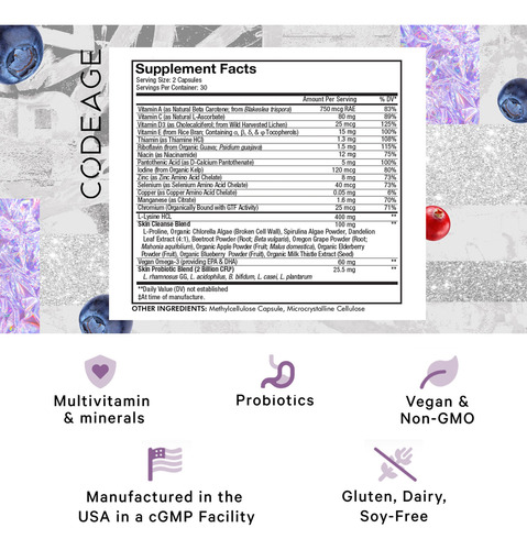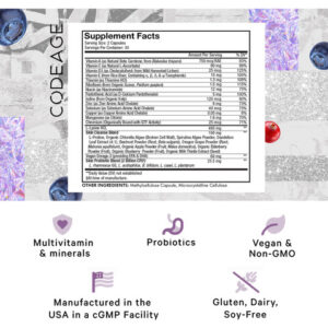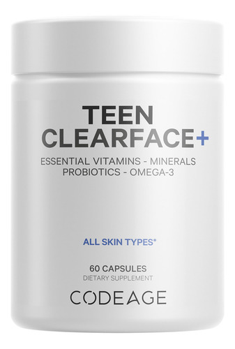 Codeage Teen Clearface Adolescent Face, Skin & Pimples, Vitamins A, C, D3, E, Pantothenic Acid, Niacin, Zinc Supplement Teenagers, Probiotics, L-Lysine, Omega-3, Oily Skin, Pores, Spots – 60 Capsules – Skin vitamins & minerals: All-in-one formula for teenagers ages 12-18 featuring vegan vitamin A as natural Beta-Carotene, vitamin C, vitamin D3 from wild harvested lichen, and vitamin E from rice bran. This face and skin supplement also combines 8 mg of zinc along with selenium, copper and GTF chromium. – Pantothenic acid & niacin: Teen Clear face pimples supplement capsules provides 12mg of niacin as niacinamide and 5mg of pantothenic acid. Can be used for all skin types including oily skin and as part of a beauty regimen. – L-lysine & vegan omega-3: This nutritional capsule blend for adolescent also combines 400mg of L-Lysine HCL, L-Proline, and 60mg of vegan omega-3 fatty acids. Nutrition may be used as part of a pimple serum and face cleanser routine. – Probiotics & herbal blend: Each serving offers a probiotic blend delivering 2 billion CFU with 5 different strains of probiotics, shelf-stable and high-quality probiotics. Codeage Teen Clearface skin vitamins also feature a blend of face botanicals such as organic chlorella algae, spirulina algae, organic apple fruit, cranberry, elderberry, blueberry powder, and more. – Made in the USA: Codeage skin multivitamin for teens are non-GMO and made in the USA in a cGMP certified facility.