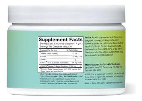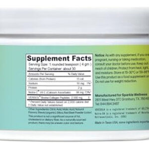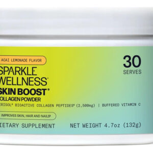 Sparkle Wellness Skin Boost contains 2,500 mg of VERISOL bioactive collagen peptides and 66 mg of vitamin C per serving, ingredients clinically proven to improve skin health. This supplement increases collagen levels in the skin by up to 60%, helping to achieve a more even skin surface and a visible reduction in fine lines around the eyes with regular use. Its collagen powder mixes easily and tastes delicious, available in various flavors that you can incorporate into water, yogurt, or your favorite smoothie. It also promotes hair and nail strength, increasing hair thickness and growth, improving nail growth, and reducing the symptoms of brittle nails, all backed by clinical studies. Perfect for those seeking comprehensive skin, hair, and nail care within the health and wellness category.