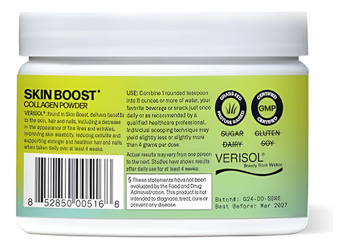 Each serving contains 2,500 mg of VERISOL collagen peptides and 66 mg of vitamin C to improve skin health.