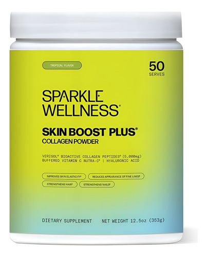 Sparkle Wellness Skin Boost Plus (tropical) 50 porções Suplemento de colágeno em pó com peptídeos bioativos de colágeno hidrolisado VERISOL, vitamina C e ácido hialurônico