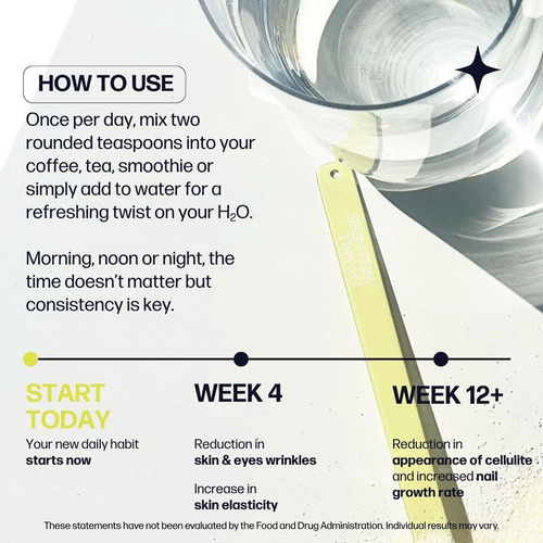 Este suplemento contém 5.000 mg de colágeno VERISOL clinicamente comprovado para melhorar a saúde da pele