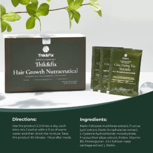 Apoiado pela ciência: contém proteoglicanos altamente concentrados do salmão nasal que auxilia o crescimento e o comportamento cíclico dos folículos pilosos. Os proteoglicanos contêm um teor muito alto de colágeno, que demonstrou aumentar as proteínas de construção capilar do corpo e reduzir a aparência de cabelos grisalhos. O envolvimento dos proteoglicanos no crescimento do cabelo foi reconhecido pela observação do aumento do crescimento capilar. 2 pacotes por dia para cabelos mais grossos e cheios: para pessoas preocupadas com queda de cabelo, queda de cabelo ou queda excessiva, o Thik&Fix Hair Growth Nutraceutical é a solução perfeita. Ele tem como alvo as causas da queda de cabelo, movendo os folículos capilares para um estado de crescimento ativo e estimulando o fluxo sanguíneo para o couro cabeludo. Reabastecer e restaurar: este suplemento capilar funciona como um fortalecedor de união que nutre por dentro. Sua poderosa mistura combate as causas da queda de cabelo e, portanto, reduz o crespo do cabelo, repara pontas duplas e cabelos danificados e remove a caspa. – [Apoiado pela ciência] Contém proteoglicanos altamente concentrados do salmão. Apoia o crescimento e o comportamento cíclico dos folículos pilosos. Os proteoglicanos contêm um teor muito alto de colágeno, o que demonstrou aumentar as proteínas de construção capilar do corpo e reduzir a aparência de cabelos grisalhos. O envolvimento dos proteoglicanos no crescimento do cabelo foi reconhecido pela observação do aumento do crescimento do cabelo. – [2 pacotes por dia para cabelos mais grossos e cheios] Para pessoas preocupadas com queda de cabelo, queda de cabelo ou queda excessiva, o Thik&Fix Hair Growth Nutraceutical é a solução perfeita. Ele tem como alvo as causas da queda de cabelo, movendo os folículos capilares para um estado de crescimento ativo e estimulando o fluxo sanguíneo para o couro cabeludo. – [Reabastecer e restaurar] Este suplemento capilar funciona como um fortalecedor de união que nutre por dentro. Sua poderosa mistura combate as causas da queda de cabelo, reduzindo o crespo e os emaranhados e reparando os cabelos danificados. – [Tratamentos de queda de cabelo para mulheres] O suplemento de crescimento capilar Thik&Fix para homens e mulheres é formulado para fortalecer o folículo piloso, mantendo o cabelo saudável e reduzindo a queda futura de cabelo. – [Para obter o melhor resultado] Recomendamos o uso com o shampoo e condicionador Thik&Fix. Confira a linha Thik&Fix Hair Growth para mais soluções! Os resultados foram reconhecidos ao observar o aumento do crescimento do cabelo, uma aparência mais espessa e cheia.