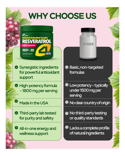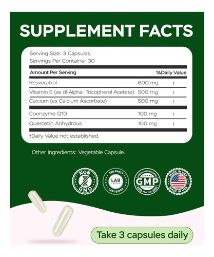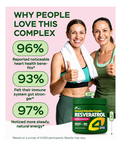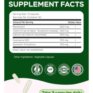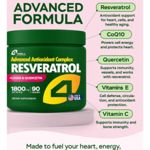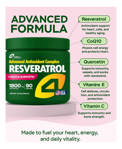 Suplemento De Resveratrol 1800mg Complexo Coq10 Quercetina