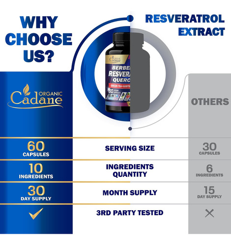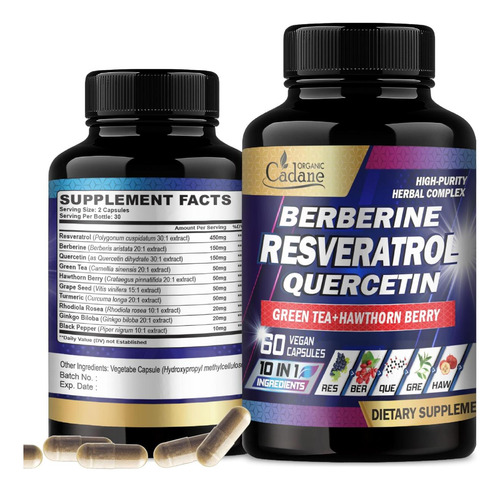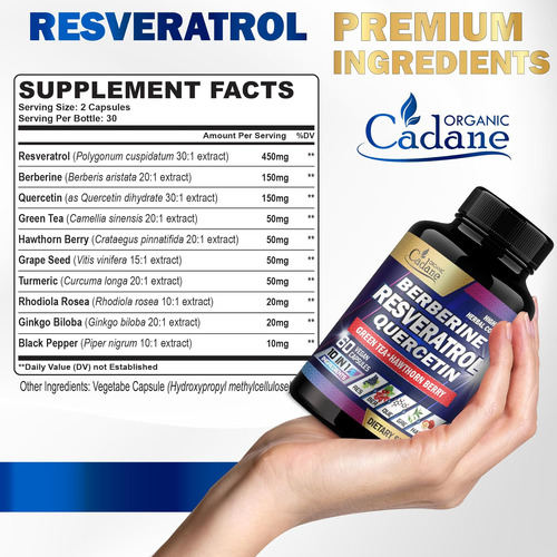 • ? ? Experimente os benefícios extraordinários do nosso produto com uma combinação potente de mistura do poder colaborativo do pó de resveratrol, quercetina, berberina, chá verde, semente de uva, baga de espinheiro, açafrão, rénea de Rhodiola, ginkgo biloba e pimenta preta. Os produtos com fórmulas ideais oferecem suporte abrangente para o seu bem-estar, ajudando você a começar seu dia cheio de energia.