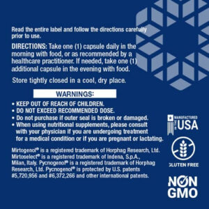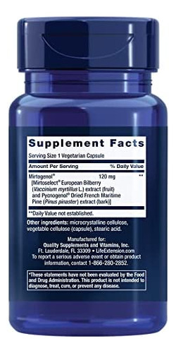 UMA PODEROSA MISTURA DE INGREDIENTES – Mirtogenol, que já é usado na Europa, combina os ingredientes apoiados por pesquisas, extrato de planta de mirtilo europeu Mirtoselect e extrato de casca de pinheiro marítimo francês Pycnogenol. Num estudo inovador de 2010, a combinação dos dois extratos utilizados no Mirtogenol induziu uma redução de até 24% na pressão ocular já saudável.