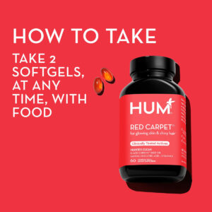 HUM Red Carpet – Skin & Hair Supplement – Black Currant Seed Oil for Glowing Skin & Strong Thicker Hair with Vitamin E & Omegas 3/6 – Hair Growth Vitamins for Women (60 Vegan Softgels) – VIP SKIN & HAIR NOURISHMENT: Ensure you always have that celebrity look with the power of vitamin E and black currant seed oil. Shine on the red carpet with nourished hair follicles and skin. – ALL-IN-ONE VITAMIN SUPPLEMENT: Vitamins for Hair, Nails & Skin come packed with the richness of black currant seed oil, full of GLA and ALA healthy fats, coupled with the essential Vitamin E. Glow naturally from head to toe. – THE SECRET BEHIND THE GLOW: How it Works – Get the lowdown on how black currant seed oils omega-3 fatty acids ensure skin hydration while Vitamin E acts as a guardian for your hair follicles, promoting luscious hair and radiant skin. – EASY & COMPATIBLE DOSAGE: How to Take – Just 2 softgels with food and youre set for the day. For those who love layering, Red Carpet is the perfect partner for other HUM Nutrition skin & hair vitamins or gummies, ensuring optimal results when taken as directed. – PREMIUM QUALITY, ETHICALLY MADE: Quality Vitamins you can trust. Red Carpet hair softgels champion vegan, gluten-free, and non-GMO ingredients. Trust in HUM vitamins and supplements for that extra touch of luxury.
