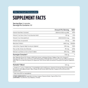 Suplemento masculino de crescimento capilar e sérum capilar Nutrafol, testado clinicamente para cabelos visivelmente mais espessos e fortes – suprimento de 1 mês, frasco de 1,7 fl oz – SUPLEMENTOS DE CRESCIMENTO CAPILAR E SORO CAPILAR: um (1) frasco de suplementos de crescimento capilar masculino Nutrafol e um (1) frasco de 1,7 fl oz de soro capilar masculino Nutrafol para apoiar a queda de cabelo por dentro e por fora – ABORDAGEM EM 2 CAMADAS PARA FORTALECER E DENSIDADE CAPILAR crescimento visando as causas da queda de cabelo com suporte adicional para o couro cabeludo de um sérum restaurador capilar (6,7) – RESTAURADOR, LEVE E DE RÁPIDA ABSORÇÃO: O sérum Nutrafol contém exossomos de Ashwagandha, peptídeos de musgo irlandês e extrato de broto de ervilha com patente pendente para apoiar naturalmente a densidade visível e a força do cabelo (7) – RESULTADOS EM 3 A 6 MESES: tome 4 cápsulas e aplique sérum para couro cabeludo uma vez ao dia para obter melhores resultados – A MARCA #1 DE SUPLEMENTO DE CRESCIMENTO CAPILAR RECOMENDADA POR DERMATOLOGISTAS*: O suplemento capilar masculino Nutrafol é testado clinicamente para melhorar visivelmente o crescimento, a espessura e a cobertura do couro cabeludo (6) (*de acordo com a pesquisa IQVIA ProVoice de 12 meses encerrados em 31 de março de 2023)