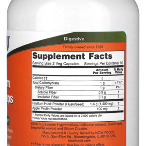 Casca Psyllium 700mg + Pectin Now Foods 180Cap