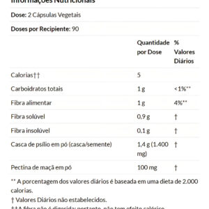 5. Composição Natural e Eficaz: Cada cápsula contém 700mg de Casca de Psyllium, rica em fibras, e Pectina, um tipo de fibra solúvel. A formulação é cuidadosamente planejada para garantir uma combinação eficaz e pura para suporte nutricional.