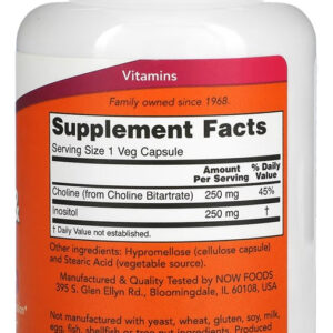 Colina e Inositol 250/250mg Now Foods 100Veg Caps