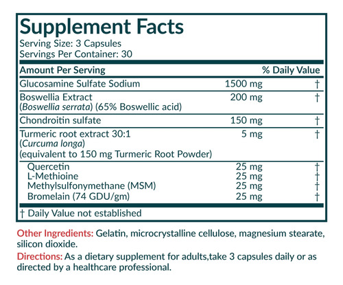 A glucosamina, a condroitina, a cúrcuma e o MSM da Futurebiotics fornecem ingredientes premium que agem sinergicamente para ajudar a manter as articulações saudáveis, a mobilidade e o bem-estar geral.* Nossa fórmula avançada para articulações e bem-estar também inclui glucosamina padronizada sem boswellia ou marisco para um suporte superior.* A glucosamina, condroitina, açafrão e MSM da Futurebiotics são transgênicos Livre de MO e cuidadosamente fabricado por profissionais treinados em nossas modernas instalações localizadas em Hauppautics Glucosamina e condroitina para articulações*: Futurebiotics, glucosamina e condroitina A cúrcuma e o MSM fornecem ingredientes premium que funcionam sinergicamente para ajudar a manter as articulações saudáveis, a mobilidade e o conforto geral.* Nossa fórmula avançada de bem-estar articular também inclui glucosamina padronizada sem boswellia e frutos do mar para um suporte superior.* – Qualidade superior, livre de transgênicos: fabricada cuidadosamente em nossa instalação registrada pela cGMP localizada em Nova York. Todos os produtos da Futurebiotics passam por um processo rigoroso para garantir sua pureza, potência e qualidade. A glucosamina da Futurebiotics é testada internamente e não contém transgênicos, glúten ou soja.