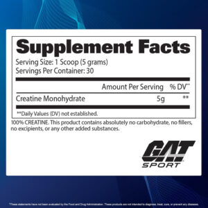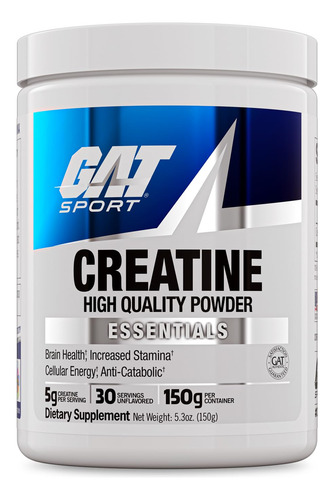 Pó de alta qualidade. Torque e tamanho muscular, maior resistência. Suporte de fosfocreatina/ATP, anticatabólico. Suplemento dietético. Torque muscular, resistência e tamanho. O monohidrato de creatina GAT é testado para confirmar sua alta pureza. A creatina monohidratada é a forma de creatina mais estudada cientificamente disponível. A creatina é um metabólito natural encontrado no tecido muscular. Ajuda a ressintetizar rapidamente o ATP, a forma definitiva de energia usada pelas células musculares para gerar força (contração muscular). Foi demonstrado clinicamente que a creatina melhora a força muscular, o torque e o desempenho. A creatina GAT é micronizada para ajudar a maximizar a absorção e a utilização. – AUMENTA O DESEMPENHO MUSCULAR: A creatina em pó GAT Sport melhora a resistência física, a potência e a capacidade de trabalho muscular. Permite que você treine mais e por mais tempo.* – AUMENTA A MASSA CORPORAL MAGRA: Com sua capacidade de promover força e estimular o crescimento muscular, a creatina em pó GAT ajuda a obter uma composição corporal mais magra, para esculpir seu físico ideal.* – APOIA A SAÚDE CEREBRAL: Esta creatina em pó pura auxilia a função cognitiva, ajudando a manter a saúde corporal. Isso pode ser especialmente benéfico à medida que envelhecemos.* – AUMENTA A RESISTÊNCIA: Ao aumentar a capacidade do corpo de criar energia com mais eficiência, o pó de creatina GAT melhora a capacidade de exercício. Pode ajudá-lo a realizar exercícios intensos com facilidade.* – FORNECE SUPORTE NUTRICIONAL: A creatina em pó GAT fornece suporte nutricional para indivíduos que precisam de uma maior necessidade alimentar. Isso pode incluir atletas e qualquer pessoa que simplesmente não consuma alimentos ricos em creatina suficientes em sua dieta normal. *