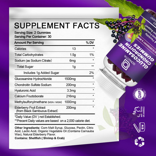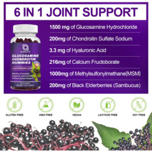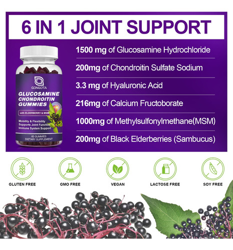 – Fórmula potente: As gomas de glucosamina e condroitina GONGOTA são uma combinação única de alta potência e alta potência absorção, com 2 gomas por dia, você receberá 1500 mg de glucosamina, 200 mg de condroitina, 1000 mg de MSM, 200 mg de extrato de sabugueiro e muito mais! Com 6 complexos absorvíveis poderosos, o melhor suplemento imunológico e cartilaginoso para homens e mulheres.