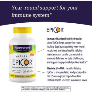 Healthy Origins EpiCor (Immune Protection), 500 mg – Plant-Based Immune Support Capsules – Gluten-Free & Non-GMO Supplement – 150 Veggie Caps – All Natural Supplements: Made with EpiCor, this supplement supports the immune system and balances immune response – Antioxidant Support: EpiCor helps activate NK (Natural Killer) cell activity, providing antioxidant support for respiratory, gut, and sinus health – Powerful Immunogens: Our supplement includes high-metabolite immunogens to support immune system health and function – Tried, Tested & True: Healthy Origins supplements are tested at independent labs to verify the potency and safety of each product; our stringent quality standards set us apart from our competitors – Quality Since 1996: Healthy Origins only uses active ingredients to create premium dietary supplements
