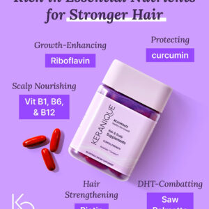 Keranique KeraViatin Hair & Scalp Health Supplement, Clinical Strength, Biotin, Vitamin B, 120 Softgels-60 Count (Pack of 2) – WAKE UP YOUR FOLLICLES: Keraniques Hair & Scalp Supplements help revitalize hair and scalp from within; Our Proprietary Complex helps existing hair grow fuller and stronger – WATCH YOUR HAIR THRIVE: Take 2 capsules a day for a minimum of 3 months to achieve astonishing results; 98% of women saw improvement in hair growth, and hair coverage on scalp was increased by 24% – NEW DESIGN OF YOUR FAVORITE KERAVIATIN: Trusted hair supplements formula tailored specifically for women – same Keranique quality, new name and packaging – SCIENCE-BACKED BLEND: Hair-thickening Biotin supports hair growth by nourishing the follicle; Our hair supplement is rich in vitamins, Riboflavin, Zinc, Selenium, and many more – LET OUR HAIR CARE BE YOUR SELF-CARE: Join Keraniques community of over 2 million women worldwide, as we nurture your hairs radiance with effective solutions and tangible results