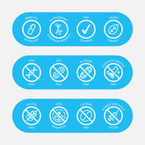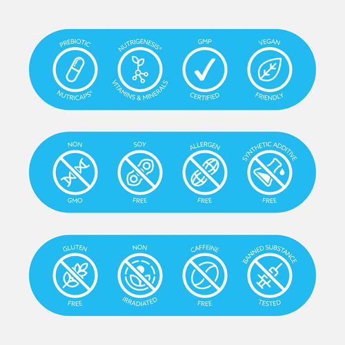 Sem glúten e lactose, sem transgênicos, vegano amigável Livre de alérgenos, OGM, micróbios, pesticidas e herbicidas. Terceiros testado e validado