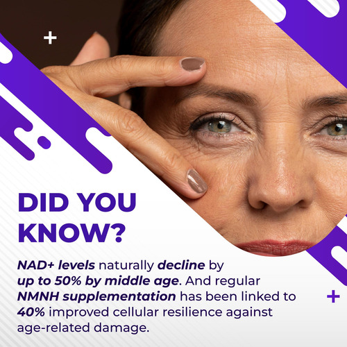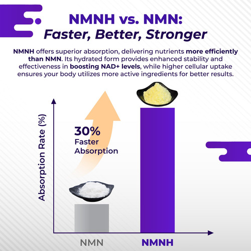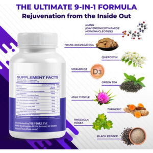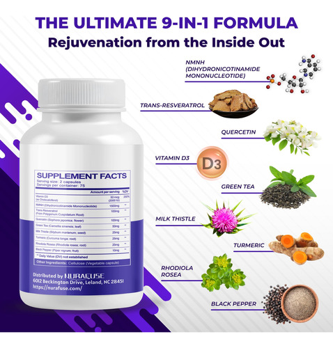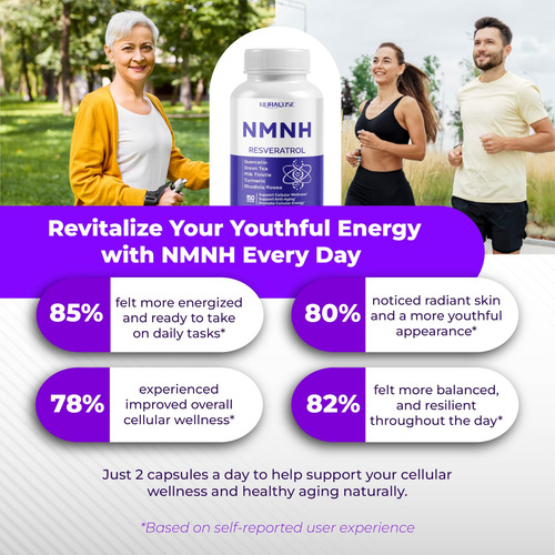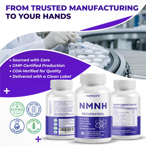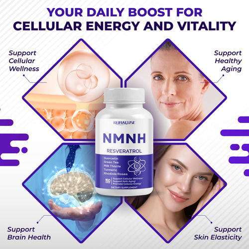 Ele combina 9 ingredientes cuidadosamente selecionados, como NMNH, vitamina D3, trans-resveratrol, quercetina, chá verde, cardo leiteiro, açafrão, rhodiola rosea e pimenta preta, para apoiar o processo de renovação natural do corpo e apoiar a energia e a mente sustentadas clareza durante dias agitados. Além disso, graças à forma de cloridrato de NMNH, ele oferece melhor absorção do que o NMN, ajudando a manter os níveis de NAD+, geralmente chamados de dourados molécula para vitalidade celular.