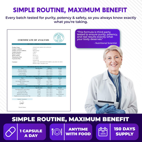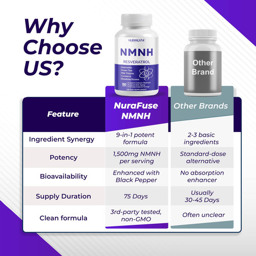 Com apenas 2 cápsulas por dia e um suprimento de 75 dias por frasco, o suplemento NuraFuse NMNH oferece conveniência e valor duradouro.