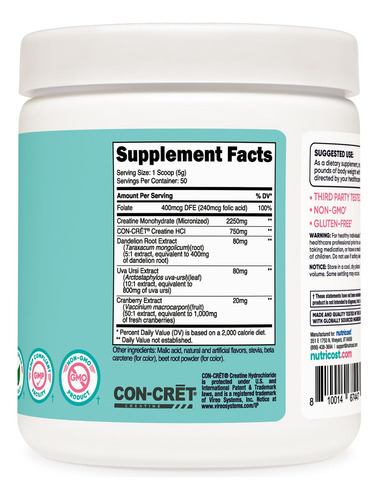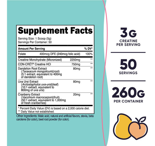Nutricosts Peach Mango Creatine Monohydrate Powder for Women, 50 Servings, has 3 grams of creatine per serving. Nutricost, located and headquartered in the USA, only uses the best ingredients to ensure maximum quality and to help you feel your best! By keeping our supplement recipes simple and clean, you get the best experience possible with Nutricost. This Nutricost supplement is manufactured in a GMP-compliant and FDA-registered facility, and each batch of every product is tested by independent, ISO-accredited laboratories to insure safety and quality. – High Quality Micronized Creatine Powder Monohydrate Complex with Folate, Dandelion Root Extract, Uva Ursi Extract and Cranberry Extract – 50 Servings Per Bottle (Scoop Included), 3g of Creatine Per Serving – Vegetarian Friendly, Non-GMO, and Gluten Free – Manufactured in a GMP Compliant, FDA Registered Facility – Only What You Need, Nothing You Dont! Weve simplified our entire philosophy down to that single concept. This motto is what drives us to find the highest quality sources of the purest ingredients for each supplement we offer.