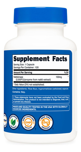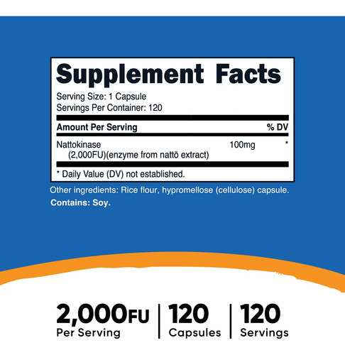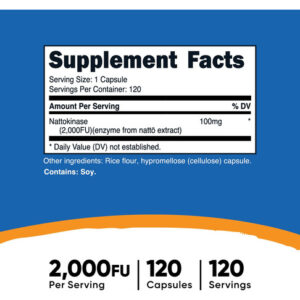 A nattoquinase da Nutricost é 2.000 FU (unidades fibrinolíticas) de natoquinase por porção de 100 mg. Cada frasco contém 120 cápsulas e 1 porção é apenas 1 cápsula!