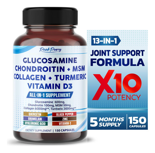 – Potência máxima: a glucosamina PeakPury garante eficácia ideal com 9.175 mg por porção e 150 cápsulas por frasco, oferecendo um notável suprimento de 150 dias para um bem-estar sustentado. –