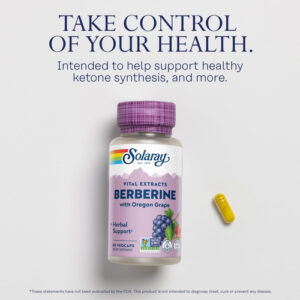 Solaray Berberine 500 mg – Suplemento de berberina para um estilo de vida saudável e ativo – com berberina HCl e raiz de uva do Oregon – Vegano, garantia de devolução do dinheiro em 60 dias, verificado em laboratório – 60 porções, 60 VegCap – Cumpra seus objetivos: uma excelente ajuda em metas de estilo de vida saudável quando combinada com dieta e exercícios adequados, a berberina pode ajudar a fornecer um apoio poderoso. – Berberina tradicional: obtida da bérberis indiana, berberina a ina é um alcalóide amarelo dourado usado há mais de 3000 anos por seus muitos benefícios potenciais, incluindo suporte à saúde digestiva e cardíaca. – Ótimo para Keto: Considerada um ativador da AMPK, a berberina pode ser particularmente benéfica para quem segue uma dieta cetogênica. – Ecológica: comprometidos com um planeta mais limpo, usamos garrafas 100% PCR feitas de plástico removido dos oceanos e aterros sanitários. – Marca confiável: fabricada em nossas instalações com certificação GMP e testada em nosso próprio laboratório de última geração em Utah para garantir pureza e potência. Como acreditamos na qualidade e eficácia de nossos produtos, cada frasco vem com uma garantia de reembolso de 60 dias.